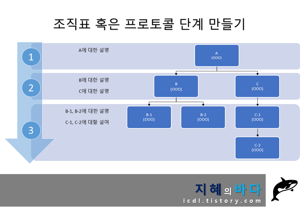 간혹 조직도나 프로토콜 단계들을 만들 경우에도 스마트아트 기능을 활용하면 아주 심플하고 간단하게 만들 수 있습니다. 또한 만들고 나서 다른 모습으로 언제든지 바꿀 수도 있습니다.
