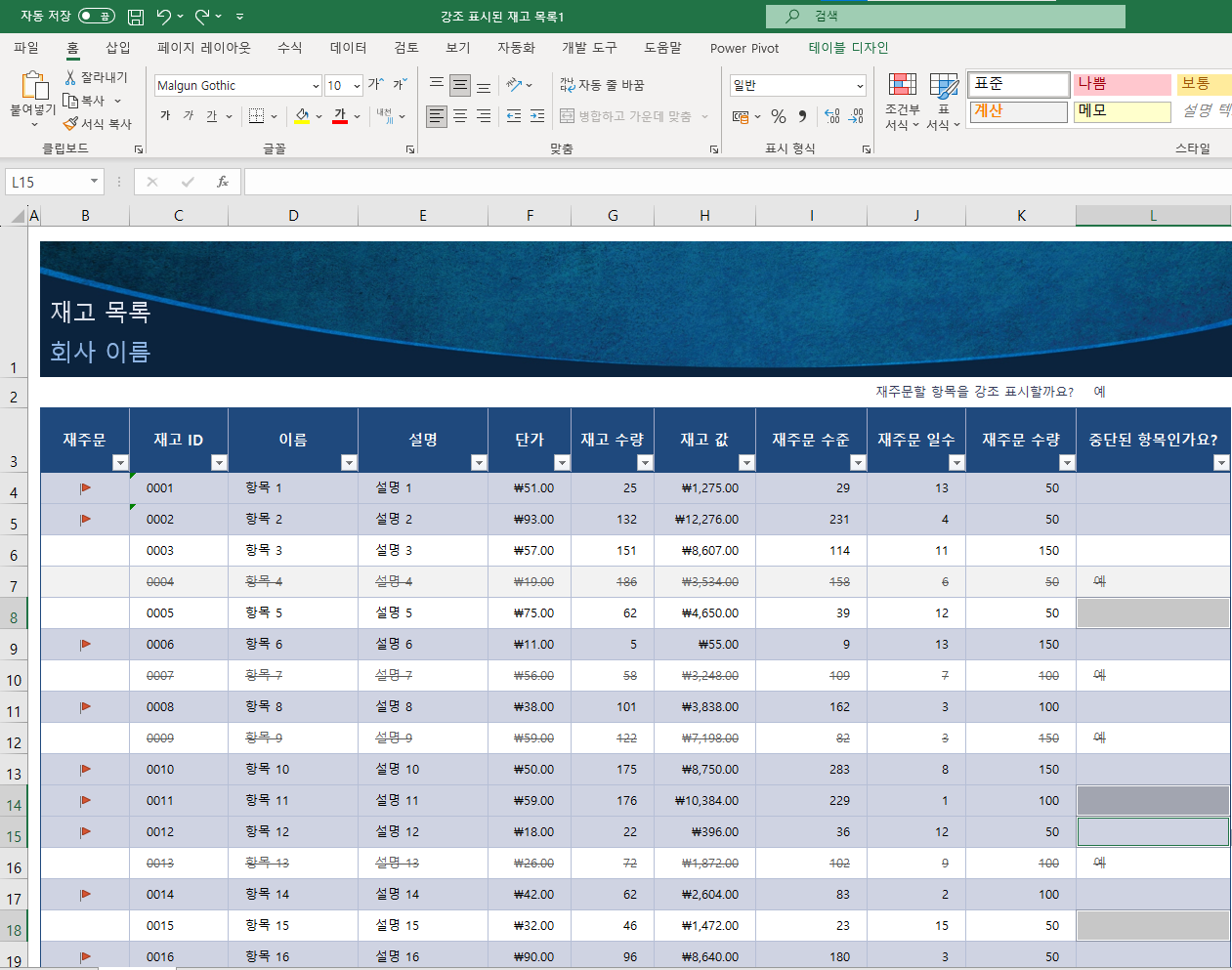 엑셀 빈 셀을 지정해서 한번에 동일 값을 채워 넣기